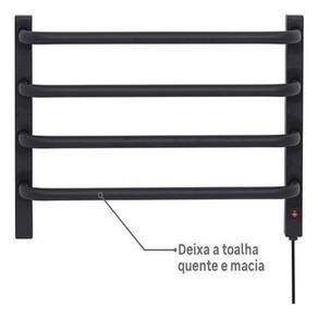toalheiro Térmico Simples Flape Uma solução prática e elegante para o seu banheiro O toalheiro térmico simples Flape é uma opção compacta e funcional para quem busca aquecer suas toalhas de forma rápida e eficiente. Com design moderno e acabamento fosco, ele se adapta a diversos estilos de banheiro. Características Principais: Praticidade: Ideal para aquecer uma toalha de cada vez, proporcionando conforto e praticidade. Segurança: Possui proteção contra ácaros, fungos e bactérias, garantindo um ambiente mais higiênico. Eficiência: Baixo consumo de energia e aquecimento rápido da toalha. Facilidade de Instalação: Acompanha kit de fixação para instalação na parede. Design: Design moderno e elegante, com acabamento fosco, se adaptando a diversos estilos de banheiro. Durabilidade: Construído em aço carbono, garantindo resistência e durabilidade. Certificação: Possui certificação do Inmetro, garantindo a qualidade e segurança do produto. Especificações Técnicas: Marca: Flape Tipo: Toalheiro térmico simples Tensão: 127V 110V Dimensões: 36cm x 56cm x 12cm Peso: 3,8kg Material: Aço carbono Cor: Preto : 36 meses Benefícios: Conforto: Toalha sempre quentinha e seca, proporcionando uma sensação agradável após o banho. Higiene: Elimina a umidade da toalha, prevenindo a proliferação de bactérias e fungos. Economia: Baixo consumo de energia, reduzindo o custo da sua conta de luz. Estética: Design moderno e elegante que valoriza o ambiente do banheiro. Facilidade de Limpeza: Limpeza simples com pano úmido, sem a necessidade de produtos químicos. Aplicações: Residencial: Ideal para banheiros pequenos ou para quem precisa aquecer apenas uma toalha por vez. Hotelaria: Pode ser utilizado em hotéis, pousadas e outros estabelecimentos hoteleiros. Ambientes Comerciais: Pode ser utilizado em banheiros de escritórios, academias e outros ambientes comerciais. Considerações Importantes: Instalação: A instalação deve ser realizada por um profissional qualificado, seguindo as instruções do fabricante. Limpeza: Limpar regularmente com pano úmido e neutro, evitando o uso de produtos abrasivos. Segurança: Desligar o toalheiro da tomada ao realizar a limpeza ou manutenção.