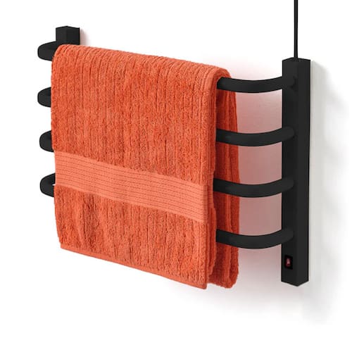 Toalheiro Térmico Pequeno Preto Fosco para 1 Toalha - 220V FIO SUPERIOR DIREITO