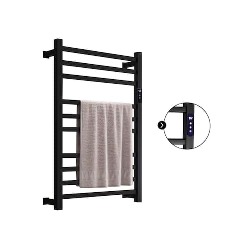 Benefícios: - Design Sofisticado: O modelo quadrado e o acabamento preto fosco trazem um toque moderno e charmoso, combinando com diversos estilos de decoração. - Aço Inox: Fabricado com material resistente à corrosão, garantindo durabilidade e fácil manutenção. - Higiene e Conforto: Elimina fungos e bactérias, aumenta o tempo útil das toalhas e ajuda na desumidificação do ambiente.