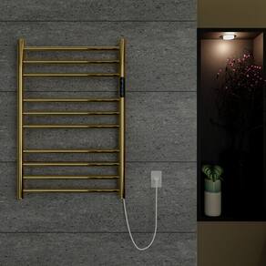 Toalheiro Térmico Kazalinda Redondo Dourado Polido com Timer Embutido - Fio Lado Esquerdo