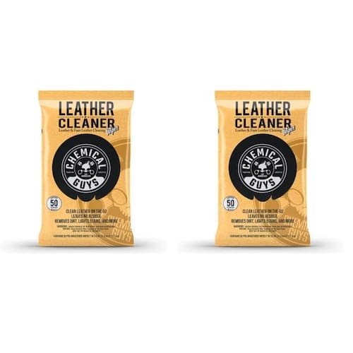 Chemical Guys PMWSPI20850 Lenços de limpeza de couro mega pacote com 100 para interiores de carros, móveis, botas e muito mais, funciona em couro natural, sintético, plissado, sintético e muito mais, - As informações abaixo são apenas por pacote - Obtenha mais franja com o pacote mega 50: os lenços de limpeza de couro vêm em um pacote Mega 50; isso significa que você pode limpar e proteger seu couro contra desbotamento e descoloração por mais tempo do que qualquer outro lenço - DETALHES RÁPIDOS DE COURO: Os lenços de limpeza de couro funcionam em todas as coisas de couro - assentos, interiores, jaquetas, sapatos, tênis, botas, bolsas, móveis e muito mais; todo mundo tem algo de couro em sua casa, trazê-lo de volta à vida - Rápido, fácil e divertido: ninguém "gosta de limpar", mas se você estiver usando produtos que o tornam rápido e fácil, certamente é mais divertido. Ambos os produtos são extremamente fáceis de usar e não deixam resíduos como sabonetes, nem contribuirão para a deterioração da fibra - Trate seu couro como seu cabelo e pele: todos lavamos nossa pele e cabelo regularmente e usamos condicionadores e loções para manter a pele hidratada e fresca; lenços de limpeza de couro podem ajudar a fazer a mesma coisa com seus produtos de couro - Fórmula seca ao toque: basta limpar o limpador de couro diretamente na peça de couro e secar com uma toalha de microfibra fresca; a fórmula multifuncional limpa e remove sujeira, poeira e óleos corporais, não deixando resíduos - PH equilibrado: os lenços de limpeza de couro têm pH equilibrado para uma limpeza mais eficiente e preserva a força, durabilidade e aparência do couro; penetra nos poros do couro para levantar e suspender a sujeira e os óleos