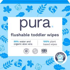 Pura Lenços umedecidos laváveis para crianças, 10 x 60 lenços (600 lenços), 100% sem plástico, 99% de água, hipoalergênicos e sem fragrância, totalmente sem cloro, lenços umedecidos de banheiro