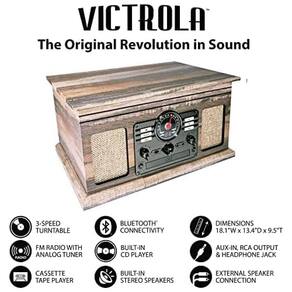 O toca discos com toca discos acionados por correia de 3 velocidades 33 1, 3, 45, 78 RPM reproduz todos os seus discos de vinil e álbuns favoritos Bluetooth para reproduzir música sem fio de seu dispositivo habilitado para Bluetooth, a até 10 metros de distância. CD integrado, cassete e rádio FM com sintonizador rotativo. Rádio am , FM com botão giratório nostálgico e entrada auxiliar de 3, para música de qualquer dispositivo não Bluetooth inclui cabo, entrada auxiliar RCA e entrada para fone de ouvido Sala com alto falantes estéreo de 5 watts Tipo de fonte de energia Elétrica com fio Tecnologia de conectividade Wired Componentes incluídos manual, adaptador de energia Marca: Não Informado