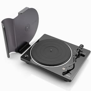 A capa protetora removível apresenta um design moderno, elevando a estética geral do DP-400 e eliminando os problemas de vibração que afetam a qualidade musical associados às capas acopladas. Serve também como suporte para a capa do seu álbum, colocando a capa protetora na vertical sobre a base incluída e exibindo-a com orgulho aos seus amigos.