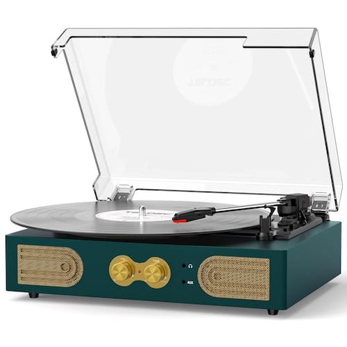 Alimentado por um mecanismo acionado por correia, este toca-discos garante uma reprodução de vinil suave e consistente, preservando a integridade de seus discos de vinil. Seu acabamento verde escuro e design retrô o tornam uma adição elegante a qualquer ambiente, enquanto a construção durável garante um desempenho duradouro. Perfeito para iniciantes e colecionadores experientes, este toca-discos de vinil é sua porta de entrada para redescobrir o som rico e quente do vinil. Aproveite a nostalgia dos discos clássicos com a conveniência dos recursos modernos!