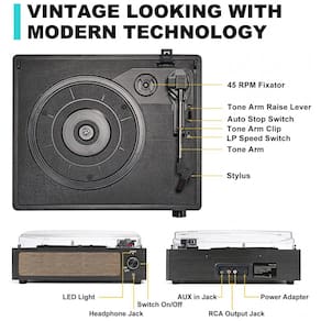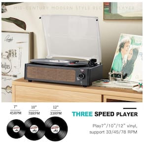 VINTAGE LOOKING GIFT OPTIONS Como um reprodutor de música combina idade e senso moderno, um toca discos estilo vintage e moderno é um ótimo ideal para sua família e amigos amorosos em todos os festivais. Não importa despertar um bom momento na memória, iniciar uma educação musical elementar ou apenas preparar uma surpresa de aniversário. OPÇÕES DE TRÊS TAMANHOS DE TRÊS VELOCIDADES Braço balanceado com controle de braço de elevação, suporte para ajuste de 3 velocidades de audição 33 1, 3, 45 e 78 RPM e reprodução de 3 tamanhos 17,25 e 30 centímetros de registros, permitem que você aproveite toda a sua coleção de discos. EMPARELHAMENTO DE ENTRADA SEM FIO Não apenas pode reproduzir discos de vinil para experimentar a música e a atmosfera de estilo retrô, mas também pode reproduzir todas as suas músicas favoritas a qualquer momento por meio de uma conexão sem fio, reproduzindo músicas de telefones celulares ou outros dispositivos de áudio. SISTEMA ANTIVIBRAÇÃO ACIONADO POR CORREIA A base da plataforma giratória é equipada com um design acionado por mola e correia para fornecer absorção de choque e melhorar a qualidade do som. Uma capa de poeira facilmente removível protege seus discos de vinil contra danos. ALTO FALANTE INTEGRADO E VERSÁTIL O alto falante estéreo dinâmico de gama completa fornece som para a audição diária de lazer. Não se preocupe se você não tiver alto falantes extras. Ou você pode se conectar a alto falantes externos via saída RCA para obter um som melhor. A reprodução AUX e USB também é uma maneira de reproduzir música. Fácil de configurar e usar, adequado para iniciantes Marca: Não Informado