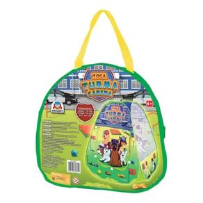 Toca em tecido poliéster com estampa temática de cachorrinhos.