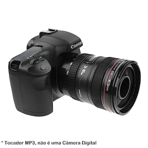 O Tocador MP3 Player Music Station em Formato Câmera DSLR é um sistema de alto-falante com leitor de MP3 é um tal item extremamente inovador e exclusivo. imagine a surpresa dos seus amigos quando você reproduzir suas músicas favoritas em um dispositivo que se parece com uma câmera. Ele tem entrada de linha para que você possa conectar seu ou outra fonte de música e usar como um alto-falante ativo somenteEm Formato de Câmera DSLR , com este Tocador MP3 Player Music Station você poderá desfrutar de boa música com este alto-falante USB. Este pequeno dispositivo é capaz de reproduzir áudio / arquivos de MP3 através de porta USB ou tomada de áudio padrão de 3.5mm. Ele também tem a capacidade de ler drives Pen Drives USB, Cartões de Memória SD, SDHC, e MMC; e significado que você pode tocar sua música para a direita fora do cartão de memória. Ele também suporta os formatos MP3 e WMA. Este alto-falante em forma de câmera requer 4x pilhas AA não inclusas e vem também com um controle remoto. Você pode ligar o alto-falante DSLR através de uma porta USB ou 4x pilhas AA não inclusas , e você pode conectar a música através de um fone de ouvido padrão. Ainda melhor, há um slot SD e uma porta USB para a sua música digital, que pode jogar diretamente do cartão. Tocador MP3 Player, não é uma Câmera Digital. Marca: Não Informado Ean: 0744110428056