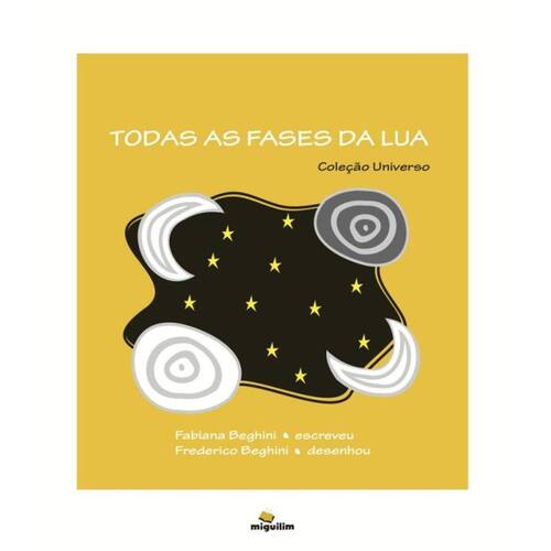 Todas as fases da lua é um livro lindo que desperta o interesse e a observação pelas maravilhas do universo. O texto é em fonte ampliada que permite aos leitores de baixa visão o mesmo acesso ao conteúdo. Com imagens e cores bem interessantes, o projeto gráfico e a diagramação primam pelo cuidado com o impresso, o que é uma característica forte da miguilim. Esta obra é o segundo volume da Coleção universo, composta por cinco títulos, sendo que o primeiro volume, "Um pedacinho do Céu", foi finalista do prêmio Jabuti de 2014. Ean: 9788574421513