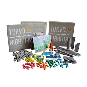 Tokyo Highway - Rainbow City é baseado na Tokyo Metropolitan Expressway, conhecida por sua distinta estrutura metropolitana. O jogo não possui tabuleiro nem espaços de tabuleiro. Os jogadores competem para construir estradas entre as rodovias uns dos outros e posicionar seus carros. Um espaço arquitetônico tridimensional único será criado na mesa seguindo as diretrizes simples de construção. Além das Regras Básicas intermediárias, o jogo também inclui Regras de Missão, nas quais os jogadores buscam a maior pontuação completando várias missões. Construa sua própria rodovia única com o equilíbrio das pontas dos dedos e uma estratégia de construção criativa. Até 6 pessoas podem jogar juntas na versão para 2 jogadores!