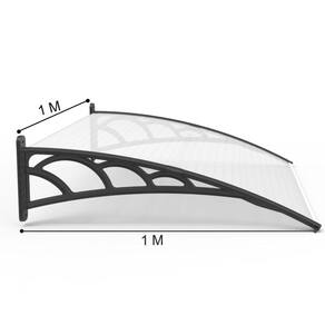 Toldo Fixo Versátil - 1 metro de avanço - p/ portas, janelas e ar-condicionado - Cor: Chapa Cristal (Transparente) com Braço Preto | Tamanho: 100 Cm