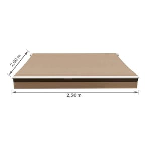 Com o Toldo Retrátil Manual, da Naterial é possível aproveitar muito mais sua área externa em dias ensolarados, pensado especialmente na proteção dos raios solares para que possa desfrutar o melhor do ar livre e ainda garantir seu conforto.Tipo de Toldo Toldo RetrátilLinha CalimaSuporte de ParedeMaterial da Estrutura MetalTipo do Material da Estrutura AçoTonalidade da Estrutura BrancoMaterial TecidoTipo de Material PoliésterCor TaupeTonalidade Cinza e MarromLargura 2,5 mProfundidade 2 mDimensão 2,50x2,00 mPeso do Produto 16 KgTipo de Abertura ManualMarca NaterialGarantia do Fabricante 24 mes(es)