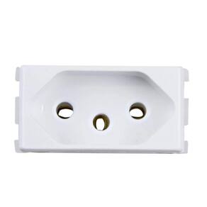 Tomada 2P+T NBR 10A/250V Branco - TRAMONTINAO Módulo Tomada 2P+T Tramontina 10 A 250 V Branco é versátil e muito prático. Produzido em termoplástico antichama, ele possui 2P+T e 10 A, além de apresentar 250 V. Na cor branca, pode ser substituído por outras cores presentes na linha, assim como ser utilizado com outras placas de diferentes linhas da Tramontina. Possui ainda acabamento brilho que não retém poeira. É um modelo largo que garante um contato perfeito com a rede elétrica, já que os condutores elétricos são fixados aos bornes e travados por parafusos. Uma peça prática e essencial para deixar seu projeto ainda melhor!*Utilizar nas linhas: Liz, Lux², Giz, Tablet, Lizflex, Plastibox e conduletes Tramontina com tampa sistema modular.*Comprimento: 40 mm*Largura: 20 mm*Altura: 35 mm*Conteúdo da embalagem: 1 Unidade de Tomada*Ref.: TRAMONTINA- 57115030*Marca: Tramontina*Codigo: 80515* Imagens meramente ilustrativas*