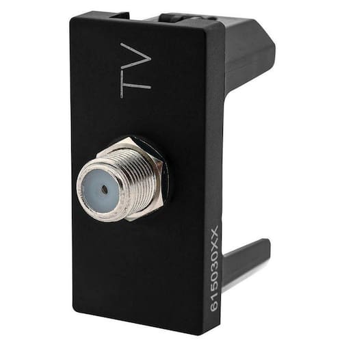 Módulo Tomada Antena TV Pial Plus+ Conector Tipo F Preto 615030PT Legrand - Para cabo coaxial de 75 Ohms. Tipo F. - Cor: preta - Sem placa - Código do fabricante: 615030PT - Legrand Produto com do fabricante. O Módulo para Antena de TV da linha PlusMais da Pial Legrand, é produzido em Metal e Plástico com acabamento acetinado na cor Preta e foi desenvolvido para cabo coaxial de 75 O. Tipo F. A linha PIAL Plus+ é totalmente modular, permitindo com que suas ligações sejam feitas com a combinação de funções que melhor atenda às necessidades do ambiente. Possui linhas finas e bem definidas, que traduzem toda a elegância dessa série inspirada no que há de mais moderno pelo mundo. Conta com Barretes, que são Barras que limitam e dão acabamento perfeito aos mecanismos instalados, além de Acabamento Moderno com Placas de linhas retas, formato plano e espessura fina para compor o ambiente.