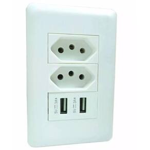 - Cor: Branco Leitoso - Inclui: 02 Tomadas NBR 14136 + 02 Portas USB 2.0 - Tensão de Entrada: 90V-240V - 50/60Hz - Saída USB: DC 5.0V 2100Ma/1000mah (1 porta de 1000mah e 1 porta de 2100mah) - Bivolt: 110v / 220v - Temperatura de operação: 0 a 35 graus Celsius (32 a 95 graus Fahrenheit) - Acompanha para Instalação: 02 Parafusos - Dimensão do Espelho: 12cm x 8cm x 5cm