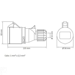 Intercambiável com outros produtos desenvolvidos em conformidade com a norma IEC 60309.