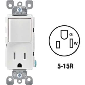 Leviton Decora 15 amperes 125 volts Branco Combinado/Tomada 5-15 R