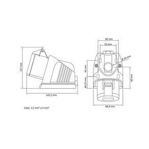 Atende a norma IEC 60309. Intercambiável com outros produtos desenvolvidos em conformidade com a norma IEC 60309. Possui grau de proteção IP44. Temperatura de utilização -25 C a 40 C. Parafusos para fixação não inclusos.