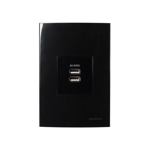 Tomada Duplo Carregador USB-A MarGirius Sleek 2A 10W com Placa 4x2 Preto Ebony