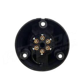 A tomada plug elétrica para reboque carretinha de 6 polos fêmea é ideal para conexão móvel de engate. Com acabamento em plástico preto, essa tomada é resistente e durável.