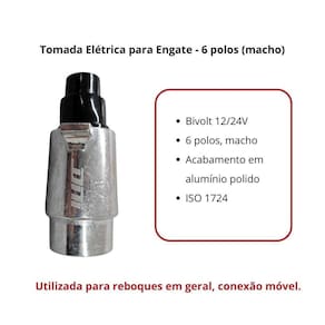 Tomada 6 polos alumínio para carretinha engate reboque macho dni8327 A parte que mais sofre em um conjunto de reboque é, sem dúvida, o plug macho. Ele cai no chão, é arrastado, recebe pancadas... Se o seu for de plástico, você já sabe o resultado: trincas e quebras constantes, deixando você na mão com a sinalização. A tomada macho de alumínio dni 8327 é a resposta para esse problema. Projetada para ser um upgrade direto, ela substitui a frágil peça de plástico por um corpo sólido de alumínio polido, garantindo uma durabilidade incomparavelmente maior e um encaixe muito mais firme. - construção robusta em alumínio: enquanto os plugs de plástico ressecam e quebram, o corpo de alumínio deste plug resiste a impactos, quedas e às condições climáticas mais severas. É a tranquilidade de ter uma peça feita para durar. - reposição inteligente apenas o macho : este produto é apenas a tomada macho, a parte que fica na ponta do chicote do seu reboque. Ideal para quem precisa substituir apenas a peça que sofreu danos, sem o custo de comprar um kit completo. - padrão nacional de 6 polos: essencial para reboques e carretinhas que utilizam o sistema de 6 vias para a sinalização básica lanterna, freio, setas e terra . Garante a conexão correta com veículos equipados com a tomada fêmea de 6 polos. Característica - marca: dni - código: dni8327 - conteúdo do kit: 1 tomada macho + 1 tomada fêmea ambas de alumínio - número de polos pinos : 7 - material: alumínio polido de alta resistência - tensão de operação: bivolt 12v / 24v - formato: redonda Aplicação: Universal Tempo : 6 meses Itens inclusos: - 1 tomada reboque ------------------------------------------------------------------------------ - a ampec autopeças não se responsabiliza pelo mau uso ou instalação indevida do produto, sempre recomendamos que a instalação seja feita por um especializado. - o produto é novo Sim, não trabalhamos com produtos , remoldados ou remanufaturados. -tem disponibilidade do produto Temos disponibilidade de todos nossos produtos enquanto durarem os estoques, favor nos consultar antes da compra. - imagem ilustrativa utilizada para identificação e demonstração de produto. - as marcas e modelos citadas no anúncio, pertencem aos seus respectivos fabricantes, somente mencionadas como referências para o uso correto do produto, conforme artigo 31 da lei: 8078 de 11.09.1990 Não temos qualquer vínculo com estas empresas. Marca: Não Informado Ean: 7896562183274