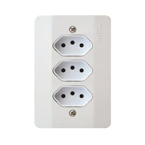 Tomada com placa tripla 2 pinos + terra 10a branca monobloco 39891 Milleniun Mectronic
