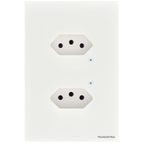 Com a tomada Onne touch smart Tramontina branco com 2 tomadas 2P+T 10 A 250 V você tem na palma da mão todo o controle da iluminação da sua casa! Ele é essencial para você que deseja estar sempre conectado e permite criar cenas e rotinas inteligentes que se adaptam ao seu dia a dia, como acionar a iluminação de acordo com a luz do dia, previsão do tempo ou localização. Este contreole pode ser feito de onde você estiver, seja por meio de comandos de voz, via Alexa ou Google Assistente, ou pelo aplicativo Tramontina.Um interruptor inteligente com design sofisticado, que tem painel de vidro na cor branca e botões touch retro iluminados com LEDs azuis, que dão um toque moderno e elegante para a decoração da sua casa e permitem o controle de forma sutil. Com tomada 2P+T, ele é bivolt e necessita de fio neutro para a instalação, além de uma rede Wi-Fi de 2.4 giga hertz. O interruptor também possui bluetooth para auxiliar na configuração no aplicativo e aceita comunicação por rádio frequência 433 mega hertz, permitindo que você o acione por meio de controle remoto.Uma escolha inteligente, que garante praticidade, segurança e funcionalidade para seus espaços!