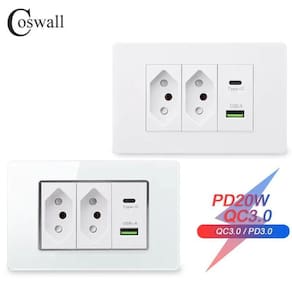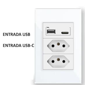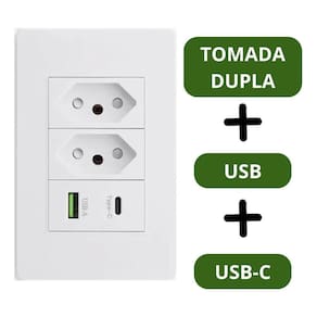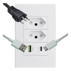 Tomada parede dupla usb-c - praticidade e segurança 'tomada de parede completa com usb duplo bivolt. - 2 tomadas padrão brasileiro + duas entradas usb