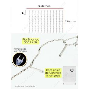 Essa cortina possui 8 modos de iluminação diferentes, permitindo que você escolha o efeito que mais combina com a sua decoração. Além disso, ela é bivolt, podendo ser utilizada tanto em tomadas de 127v quanto 220v.
