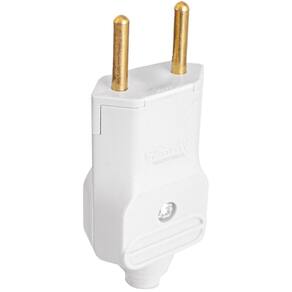Tomada Plug Macho Prensa Cabo 2 Pinos Finos 10A Branco