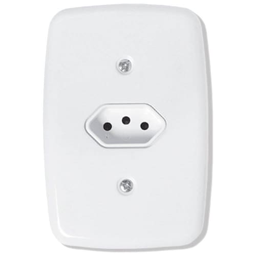 Especificações Gerais: Cor da Placa e Tecla: Branco Cor do Corpo: Branco Material: Placa em ABS, corpo em poliestireno, contatos em latão Produto Certificado Corpo com Tratamento Anti U.V.A. e U.V.B. Resistente ao calor Não propaga à chama, com classificação para GW 650°C (GW = Glow Wire Test - Ensaio fio incandescente) Deve ser instalado por pessoa qualificada, conforme requisitos da NBR 5410