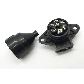 Tomada Elétrica para Engate Redonda 7 Polos Completa Nylon Preto 12/24V