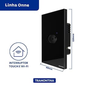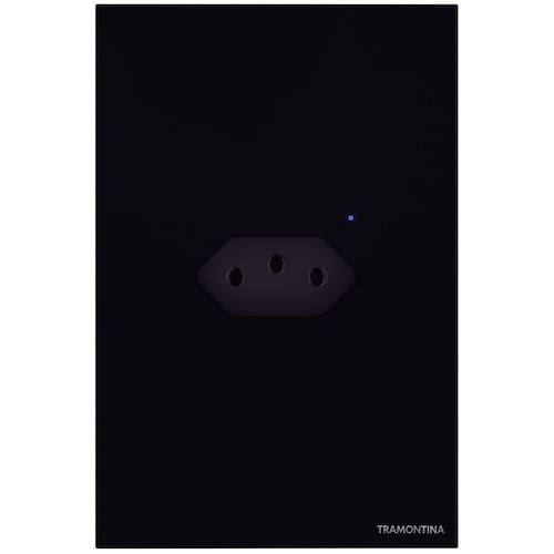 Com a tomada smart 2P+T Tramontina 10 A 250 V preta você garante uma conexão perfeita com seus equipamentos, deixando seus espaços muitos mais inteligentes. Com ela, você tem uma tomada conectada à internet, permitindo ligar e desligar seus equipamentos pelo aplicativo Tramontina ou por comandos de voz, utilizando a ou o Assistente. Ela pode ser programada de acordo com sua necessidade, permitindo a programação de horários, ligando e desligando-a automaticamente, gerando maior economia de energia e praticidade para a sua casa. Seu design é sofisticado, com painel em vidro na cor branca, tendo retroiluminação com LEDs tomada é bivolt e precisa de fio neutro para a instalação, tendo corrente máxima de 10 amperes, e para a conexão à internet, é necessário uma rede Wi-Fi de GHz. Ela ainda possui bluetooth para auxiliar na configuração no aplicativo e aceita comunicação por rádio frequência 433 MHz. Escolha Tramontina e esteja sempre conectado com as coisas importantes do seu dia a dia!