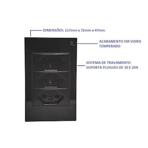 Tomada Tripla Novadigital Frontal em Vidro Temperado para 10 e 20 Amper Bivolt (Preta)