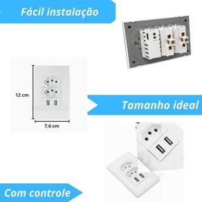 1 tomada de parede completa com usb duplo bivolt 2 tomadas padrão brasileiro 2 entradas usb