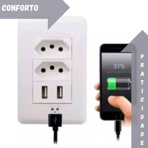 1 tomada de parede completa com usb duplo bivolt 2 tomadas padrão brasileiro 2 entradas usb