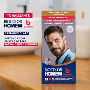 As marcas líderes em coloração masculina e cuidados masculinos se uniram para apresentar o novo Tonalizante de Cabelo Masculino Biocolor Homem Bozzano Castanho Claro. Com ação rápida, em apenas 5 minu