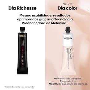 Sua textura cremosa facilita a aplicação e garante um processo mais agradável. Uma escolha versátil para quem busca desde a primeira experiência com coloração até a cobertura completa dos fios brancos, proporcionando luminosidade e vitalidade também aos cabelos naturais opacos. L'oréal Professionnel Dia Color é a solução ideal para uma cor suave, luminosa e com baixa manutenção.