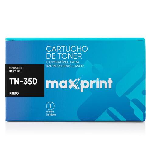 - Marca: Maxprint - Modelo: TN-350 - PN: 567407 - Tecnologia de impressão: Laser - Cor: Preto - Rendimento: Aproximadamente 2.500 páginas - Rendimento aproximado médio com base na norma ISO/IEC 19752. O rendimento real varia consideravelmente de acordo com o conteúdo das páginas impressas e outros fatores. - Compatível com:as Impressoras Brother HL2000/6000, DCP7020,MFC7220/7225N/7420,7820N, FAX 2820/2900.