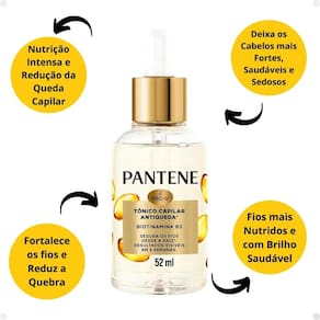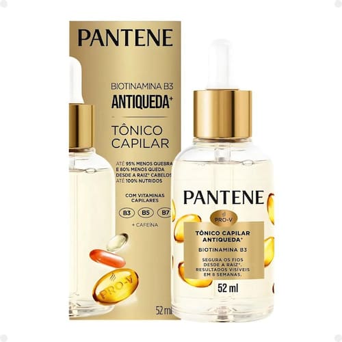 Tônico Pantene Biotinamina B3 Antiqueda+ é um produto desenvolvido para fortalecer o cabelo e combater a queda, promovendo uma nutrição profunda e revitalização do couro cabeludo.