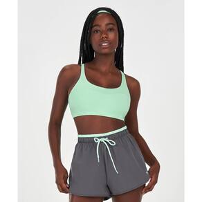 Características da peça: - Top com recorte com tule sobreposto; - Alças costas com elástico e fecho que possibilita duas opções de uso; - Bojo removível; - Confeccionado em tecido que proporciona boa sustentação, conforto e proteção UV. Diferencial da peça - Bojo removível - Proteção UV - Costas regulável