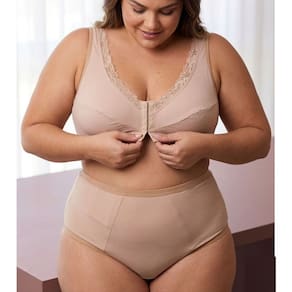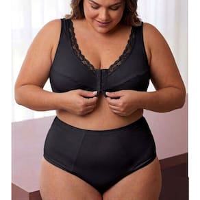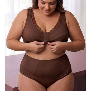 Destaque: Fechamento frontal e ausência de aros para evitar irritações.