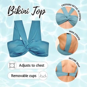 Eleve seu estilo de banho com este lindo biquíni verde para mulheres. Feita com materiais de alta qualidade, esta blusa de maiô garante conforto e durabilidade, além de proporcionar um ajuste agradável. O elegante nó no centro adiciona um elemento único e estiloso, destacando-se entre os biquínis femininos. Se você está descansando na piscina ou indo à praia, esta blusa de banho feminina foi projetada para manter sua aparência fabulosa. A rica cor verde oliva complementa qualquer tom de pele, oferecendo uma opção versátil que combina facilmente com qualquer calça de biquíni. Características principais: detalhes elegantes de nó no centro. Materiais duráveis e de alta qualidade. Ajuste agradável e confortável
