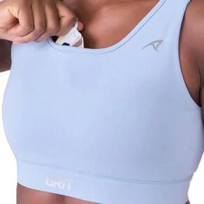 O top esportivo de alta sustentação GRIT Bossa Ajustável é um equipamento projetado para longas distâncias e dias de competição. É indicado para quem busca um top antiflacidez e prefere o ponto de sustentação distribuído nos ombros. A tecnologia Firmness Control reduz a vibração muscular e previne o rompimento dos ligamentos das mamas. As alças acolchoadas para amortecimento de impactos aliviam a pressão sobre os ombros. A tecnologia Zero Atrito reduz ao máximo os potenciais pontos de atrito na construção dos produtos. Possui alta compressão, tecnologia True-Dry, proteção solar FPU 50+, bojo removível e bolso interno para itens essenciais.