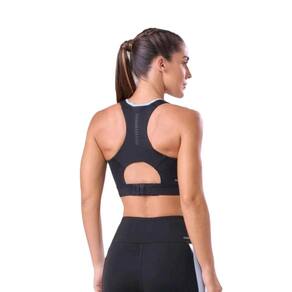 O top esportivo de alta sustentação GRIT Bossa Nadador é projetado para longas distâncias e dias de competição. É ideal para quem busca um top antiflacidez e prefere o ponto de sustentação central. O Sistema Firmness Control possui camada dupla de tecido com compressão 360, reduzindo a vibração muscular e prevenindo o rompimento dos ligamentos das mamas pelo impacto. A modelagem nadador oferece liberdade e amplitude de movimento dos braços, com decote alto e alças acolchoadas que aliviam a pressão sobre os ombros. A tecnologia Zero Atrito reduz ao máximo os potenciais pontos de atrito na construção do produto.