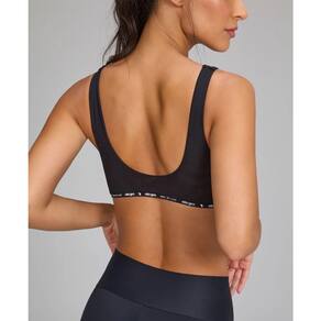 O Top Elástico Personalizado Costas Tule apresenta alças regulares e decote arredondado, com um design minimalista e elegante. Sem bojo, valoriza a forma natural do corpo, contando com frente dupla para conforto e segurança. O elástico personalizado na barra agrega personalidade, enquanto as costas em tule oferecem respirabilidade e estilo. Confeccionado em tecidos macios de poliamida com elastano, a frente em tecido liso garante boa cobertura e compressão. Disponível nas cores exclusivas azul ciano e preto.