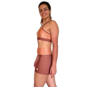 Tecidos de moda fitness contém elasticidade, portanto as medidas acima são aproximadas.