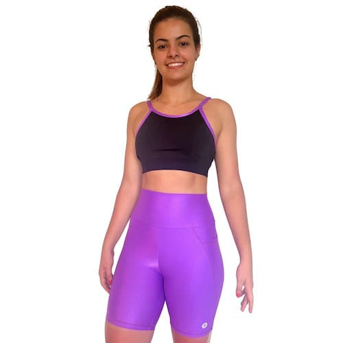 Top Fitness Cross Preto e Violeta Bruna - Marrom - G