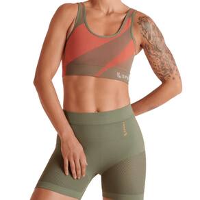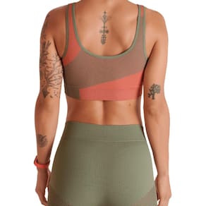 Top sem costura dupla face com duas possibilidades de uso e estampa, trazendo versatilidade, informação de uso e grande possibilidade de combinações com partes de baixo. Possui decote redondo e modelagem um pouco mais longa para melhor conforto. A alça larga junto a estrutura dupla do produto garantem alta sustentação.