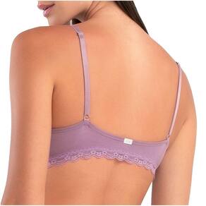 Top modelo triangulo. Sem aro e com bojo removivél. Alças fixas reguláveis. Ideal para todos os tipos de seios. Tecido em modal, garantindo extremo conforto. Acabamento em renda, proporcionando charme a peça.